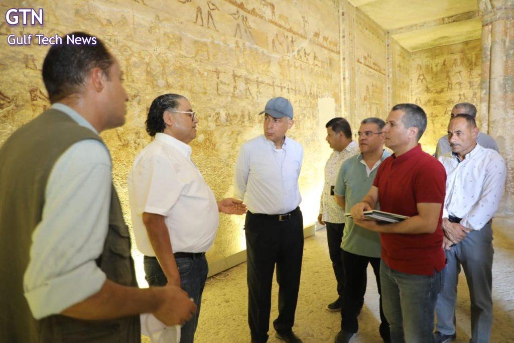 حامد فخرى رئيس مركز أبوقرقاص، دكتور ثروت الأزهري مدير ادارة السياحة بديوان عام محافظة المنيا، مخيمر فتحي كبير مفتشى آثار منطقة المنيا الشمالية.