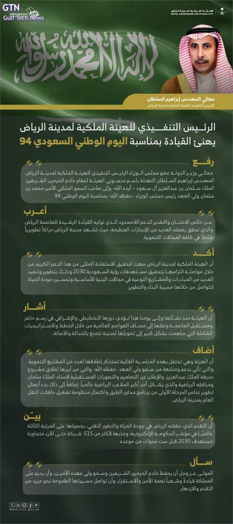 الهيئة الملكية لمدينة الرياض تهنئ القيادة باليوم الوطني السعودي 94