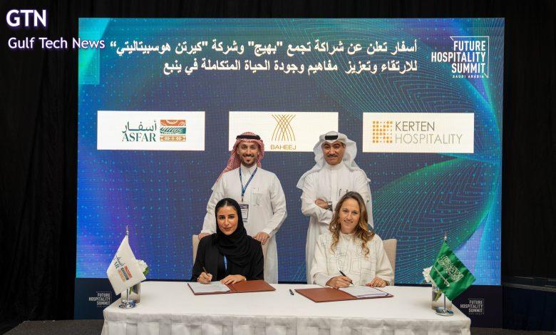 وقامت أسفار بتسهيل وتمكين هذه الشراكة التي جرى التوقيع عليها خلال فعاليات قمة مستقبل الضيافة في الرياض. وبموجب هذا التعاون ستتولى شركة كيرتن هوسبيتاليتي، إدارة فندق بهيج في ينبع، تحت مظلة Cloud 7، العلامة التجارية المبتكرة لأسلوب الحياة في الفنادق والوحدات السكنية، التي تشتهر بتصميماتها النابضة بالحياة ومساحات الاستقبال المخصصة لخدمات إجراءات الدخول، وخيارات المأكولات الصحية ومتاجر البيع بالتجزئة المنسقة.