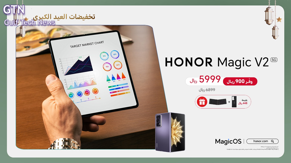 يتوفر عرض HONOR Magic V2 في متجر تجربةHONOR ، ومتجر HONOR الإلكتروني، ومكتبة جرير، وExtra، وSTC، وNoon، وAmazon.