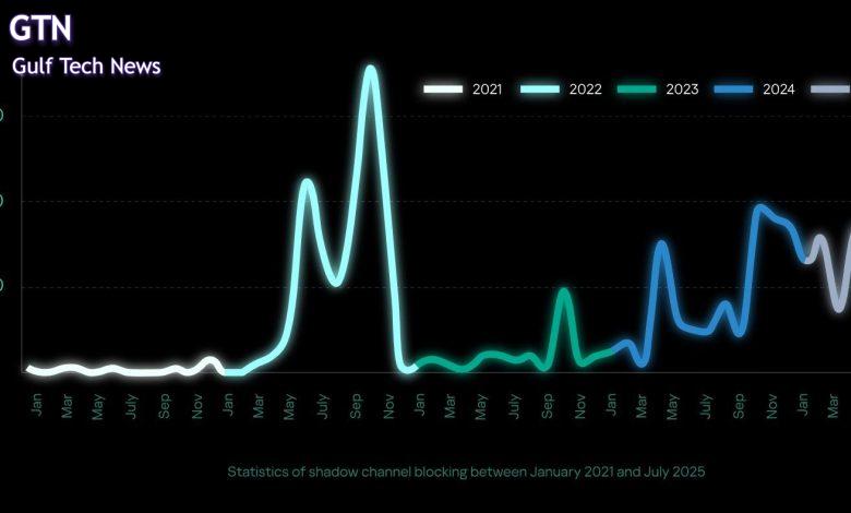 ولوحظ في الوقت نفسه ارتفاع وتيرة عمليات الحظر في تيليجرام بشكل واضح. وتقارب أرقام الإزالة والحظر الشهرية المسجلة منذ أكتوبر 2024 -حتى في أدنى مستوياتها- مستويات الذروة عام 2023، وتسارعت وتيرتها العامة خلال عام 2025، مما أعاق الأنشطة الخبيثة.