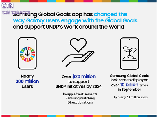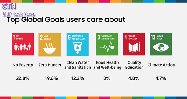 منذ إطلاقه، وصل تطبيق ‘Samsung Global Goals’ إلى ما يقرب من 300 مليون مستخدم لـ[2]Galaxy وجمع أكثر من 20 مليون دولار[3] لصالح برنامج الأمم المتحدة الإنمائي. وقد حدد المستخدمون الهدف الأول (القضاء على الفقر) والهدف الثاني (القضاء على الجوع) والهدف السادس (المياه النظيفة والصرف الصحي) كأهم أولوياتهم، مما يوفر رؤى قيمة حول القضايا العالمية التي تهمهم أكثر.[4]