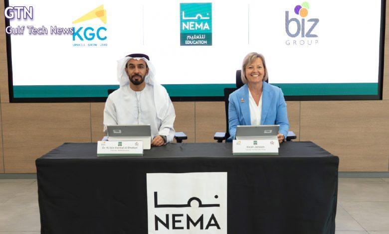 In presence of executive leadership from both organizations, the agreement was signed by Dr. Ali Saeed Bin Harmal Al Dhaheri, Chairman of Nema Education and Hazel Jackson, Founder and CEO of Biz Group.