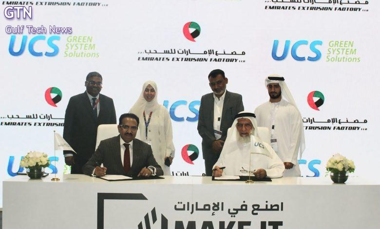 The strategic alliance was formalized during the ‘Make it in the Emirates’ forum, and was signed by Sreekumar Brahmanandan, General Manager, Emirates Extrusion Factory, and Ebrahim Mohammad Abdallah, Managing Director, UCS Green Solutions Building and Construction Materials Trading.