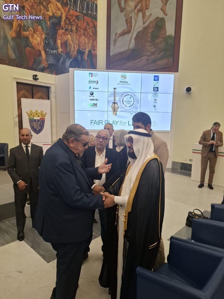 The ceremony was attended by a large number of presidents of Italian sports federations, representatives from various ministries, and members of the Italian Parliament. A special moment during the event was the presence of Dr. Ayman Abdulaziz Sarhan, a faculty member at Umm Al-Qura University, who happened to be in Rome visiting his father.