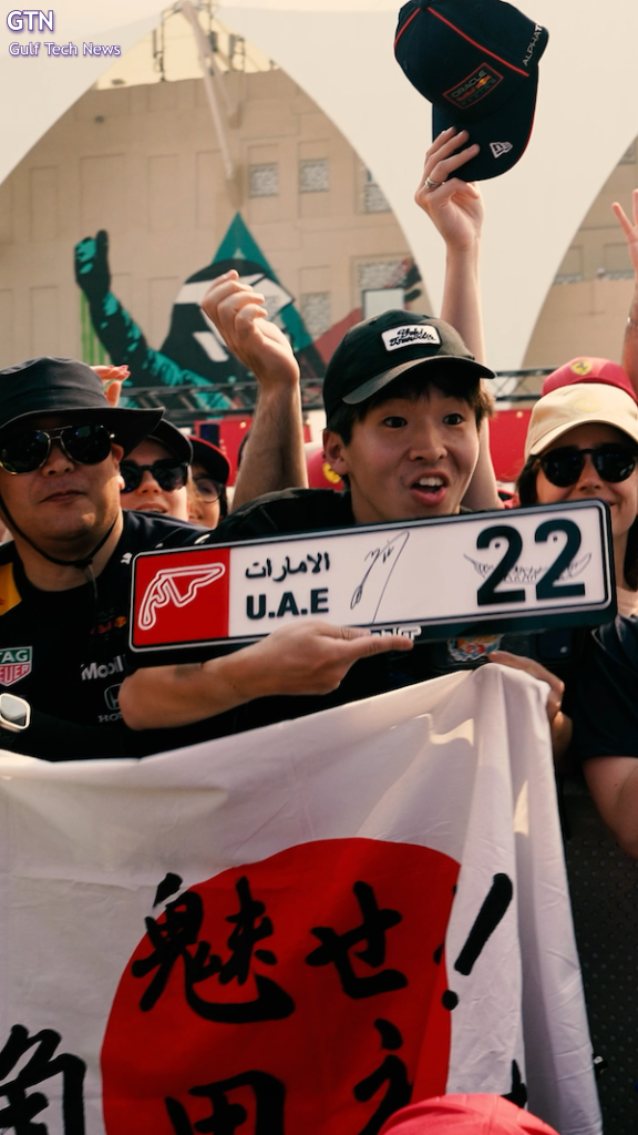 One of the day’s standout interactions saw two fans receive a symbolic Abu Dhabi number plate signed by Yuki Tsunoda and Max Verstappen